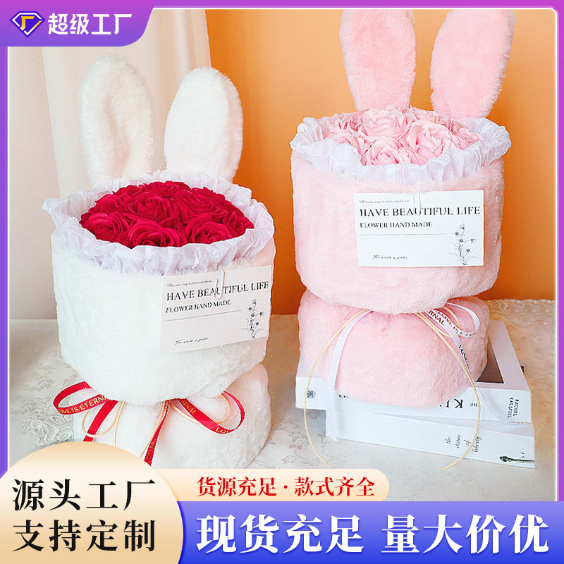 520 中国のバレンタインデーのギフト、永遠のソープフラワーブーケ、ガールフレンドの誕生日プレゼント、小さな香りのウサギとバラの完成品