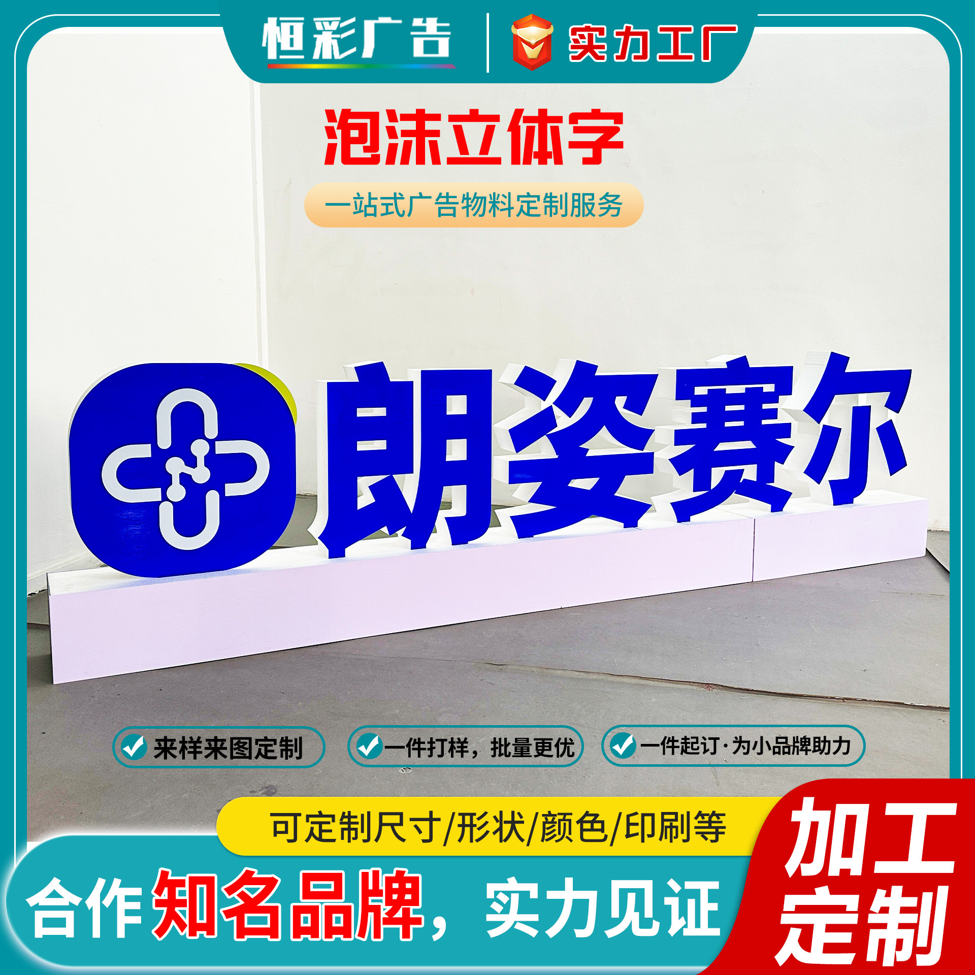 クリエイティブな立体文字制作、アクリル背景壁、クリスタル文字加工、発泡シーバンク文字、会社広告看板