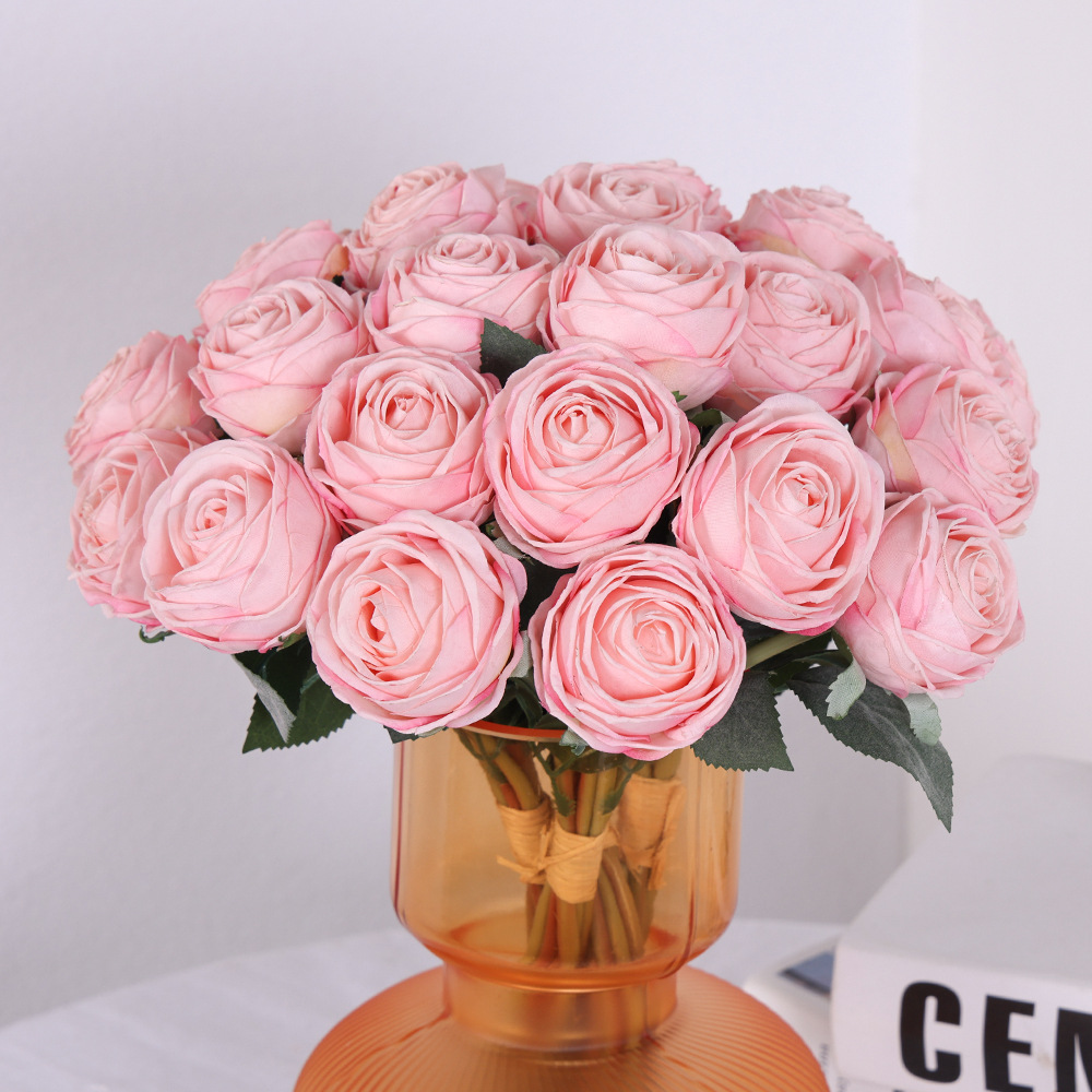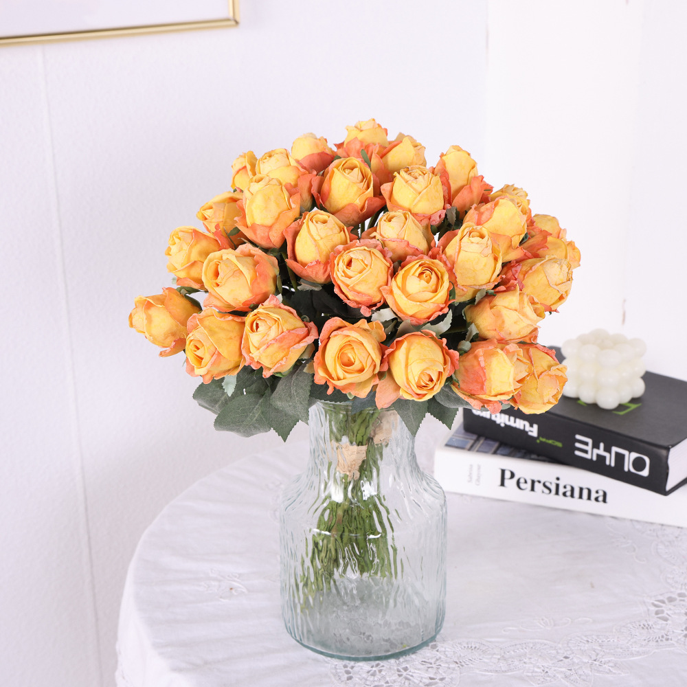 模造花北欧焦辺薔薇は家の客間の柔らかい装飾工事を飾っている