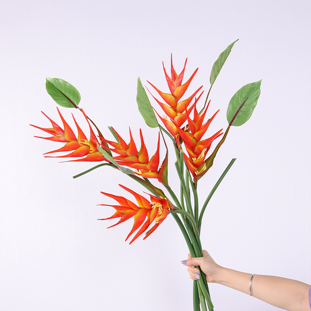 カンナの大枝の火鶴鳥の家庭のリビングルームのソフト装飾工事の結婚祝いの布景の天国の鳥の造花をシミュレーションします。