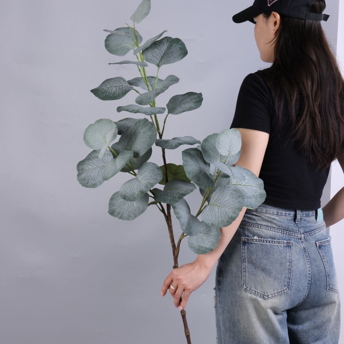 擬似緑植大枝尤加利尖金銭葉結婚祝い生け花と葉軟装工事家庭用食卓の置物