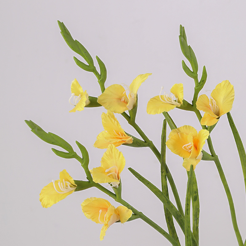 田園の風格のシミュレーションの剣の蘭の客間のお茶の何食卓は唐菖蒲の絹の花の造花の結婚祝いの装飾の置物を飾ります。