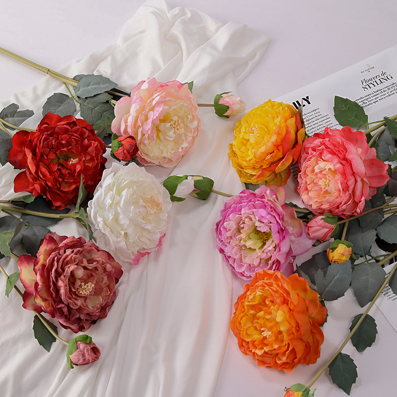 新型のペールシャクヤクの牡丹の花の家のリビングルームのテレビの棚の床の装飾は結婚祝いの愛情の誘導の花を並べます。