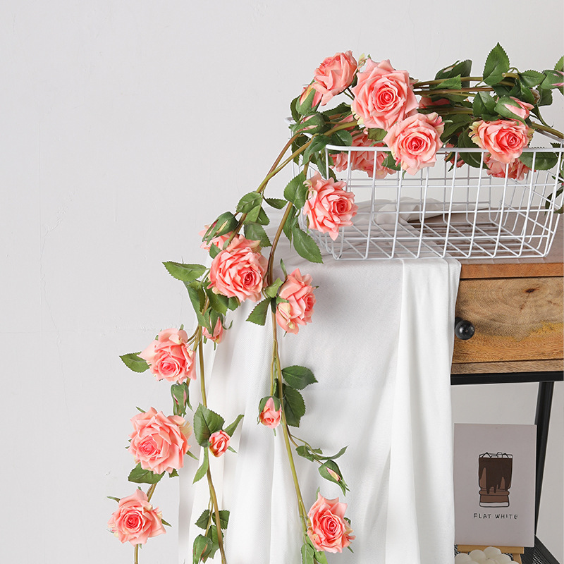 シミュレーション多頭薔薇藤条結婚式装飾花蔓壁掛け巻き空調ダクトが客間吊り天井装飾を遮る