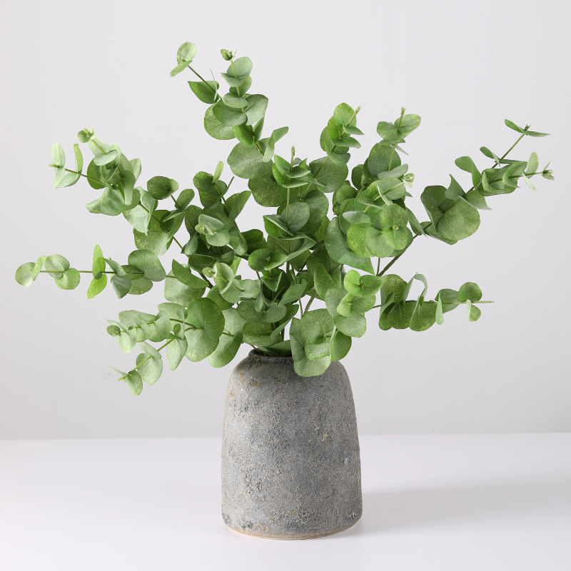 緑植5叉毛糊金銭葉ユーカリ緑葉家庭食卓装飾ソフト工事結婚祝いの造形をシミュレーションした