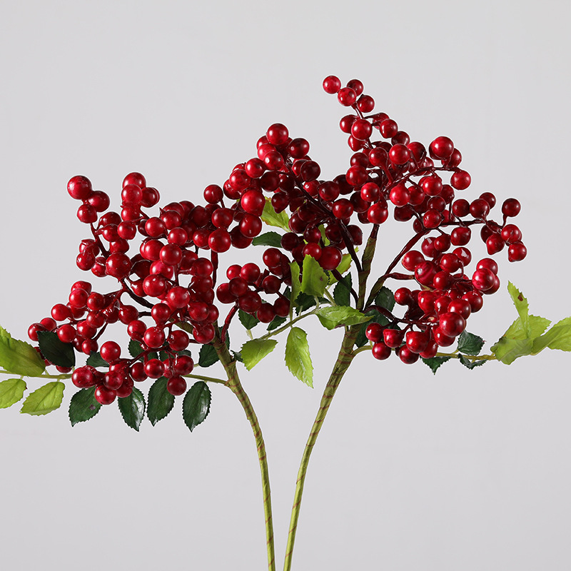 モダンな北欧模擬小枝葉付きベリーレッドフルーツフォーチュンフルーツリビングルームフラワーアレンジメントアカシア豆縁起の良い果物の枝の装飾品