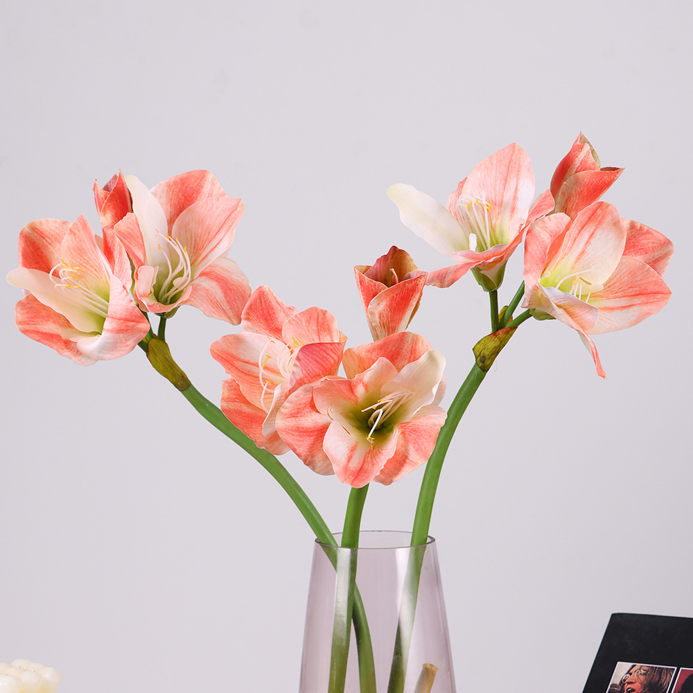 造花、造花、単枝、3頭の小さなオーキッド、高品質ショッピングモールのウィンドウディスプレイ、造花、レイアウト、炎のユリ