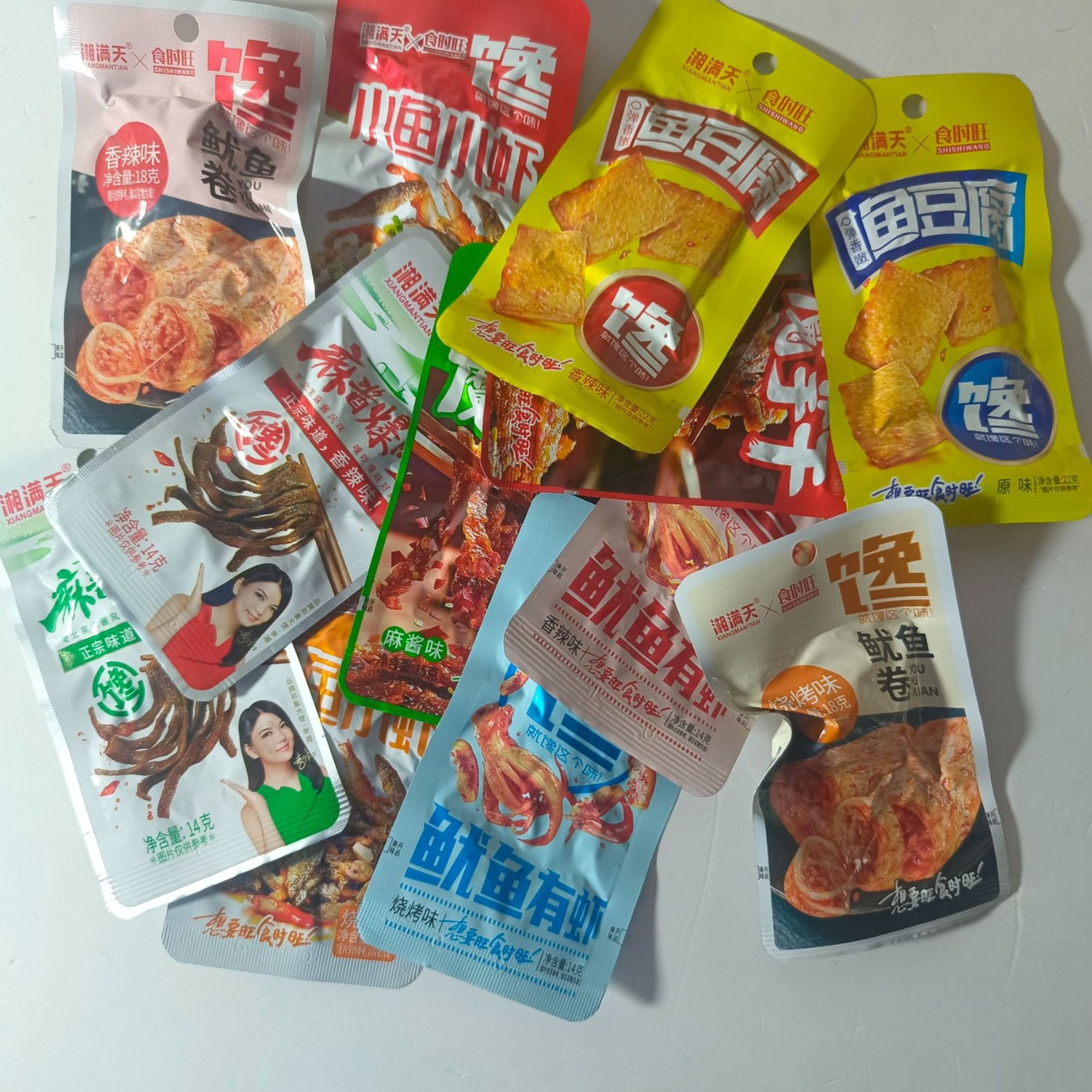 湖南のおやつの軽食の魚の子のイカは牛の腹の豆の乾燥している魚の豆腐の地方の特色の軽食の多種の味を巻きます。