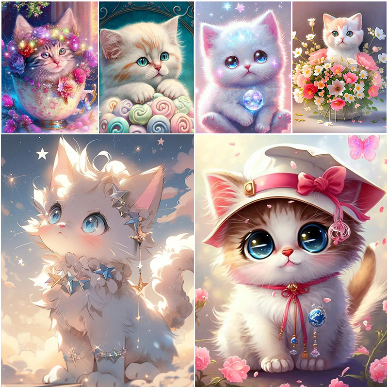 アマゾンの国境を越えた対外貿易の新しいかわいい猫の手作りdiyドリルダイヤモンドはダイヤモンド画を描いている