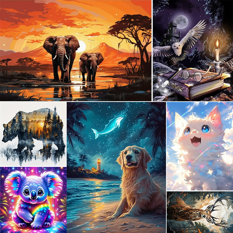 外国貿易クロスボーダー 5d 動物風景フルダイヤモンド diy ダイヤモンド刺繍フルダイヤモンドマジックスクエアラウンドドリルクラフト装飾画ダイヤモンド絵画