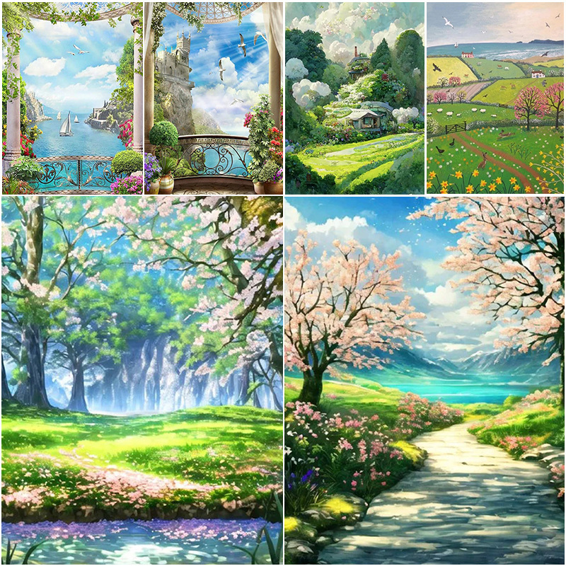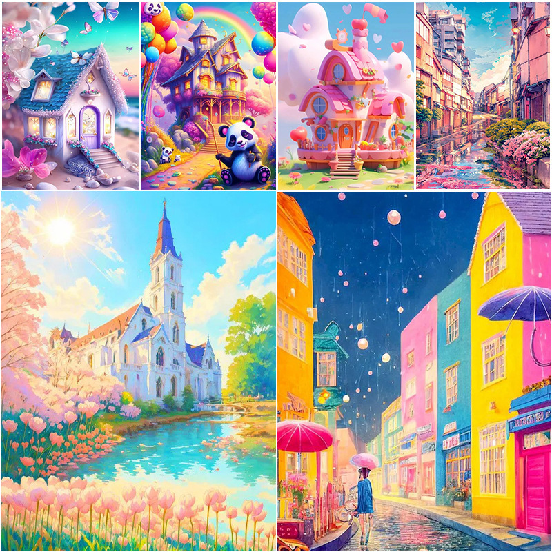 Amazon国境を越えた貿易新しいダイヤモンド絵画夢のような風景diyフルダイヤモンドダイヤモンドステッカー