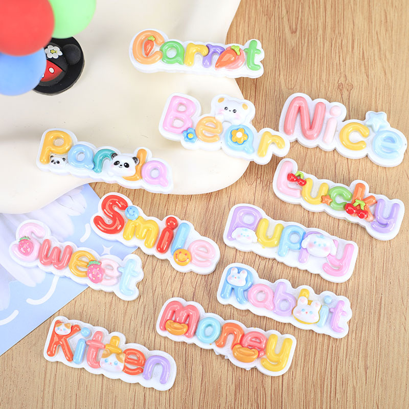 漫画の大きいサイズの英語の字の札のクリームのゴムのdiyの携帯電話の携帯電話の携帯電話の材料のアクリルのアクセサリの部品のヘアピンの紐は並べます