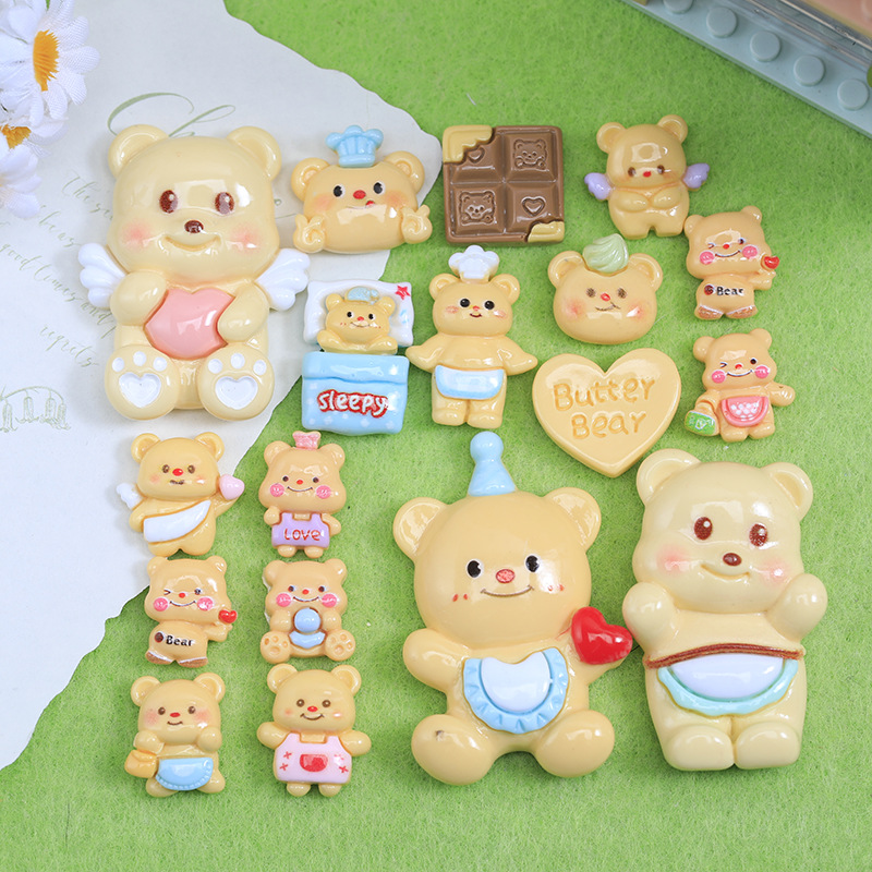 かわいいバター熊食游diyクリームゴム携帯ケース鍵穴靴ボタンヘアクリップ樹脂部品コップ