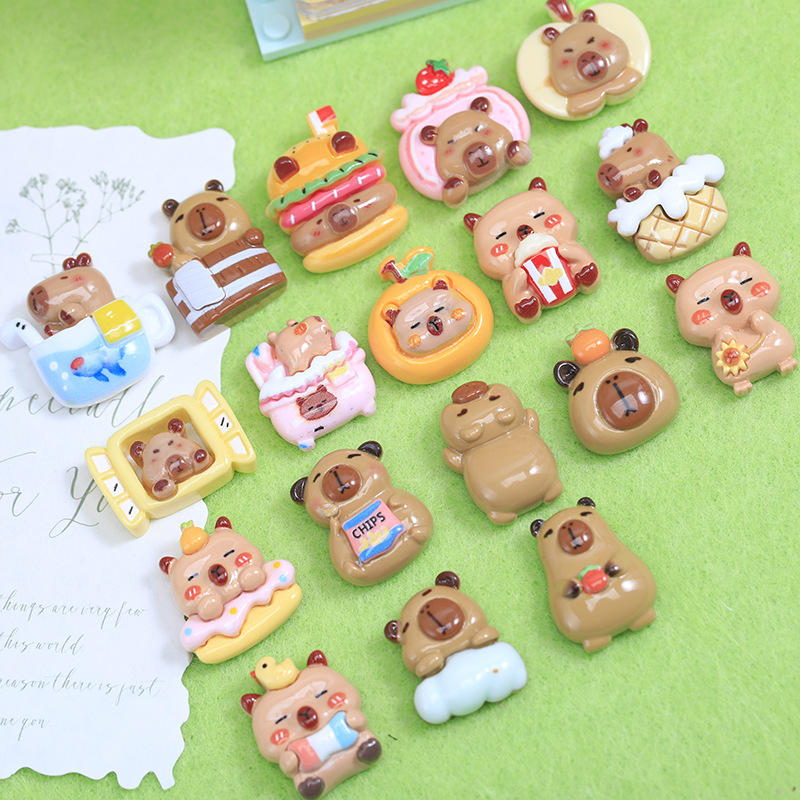 明るい顔のかわいいカピバラdiyの髪飾りの樹脂の部品の卸売りの穴の靴の装飾の冷蔵庫は子供を貼ります。