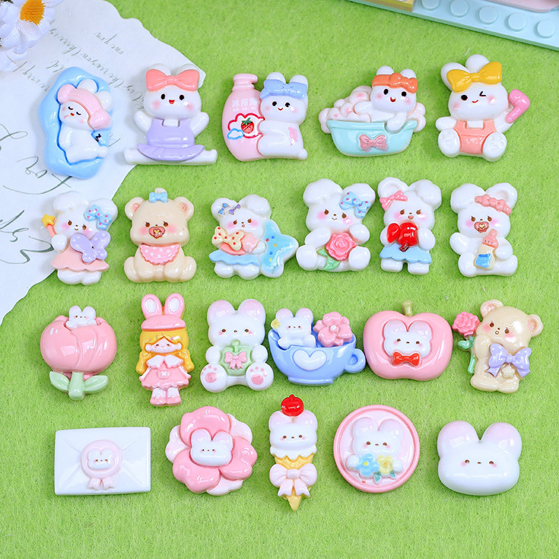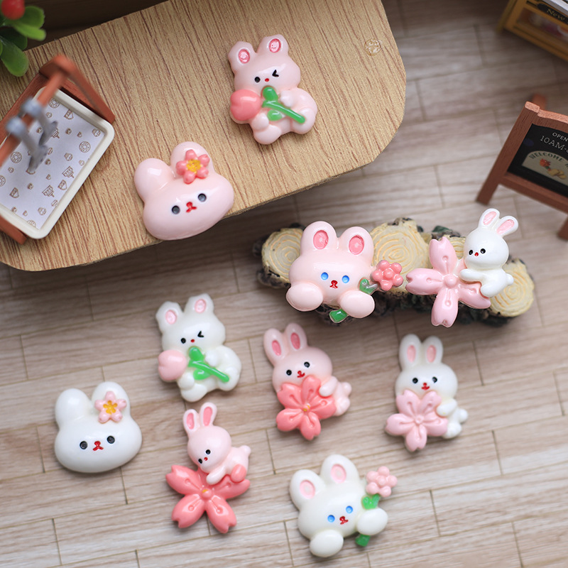 ピンクのウサギのウサギの樹脂の部品のクリームのゴムの手作りのdiyの携帯電話のケースの髪の紐の靴のボタンの美容の卸売り