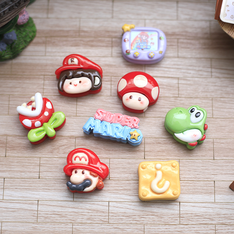 新しい明るい顔のマリーキノコ樹脂部品携帯ケーススーパーマリーキノコ漫画卸売り手作りアクセサリー髪