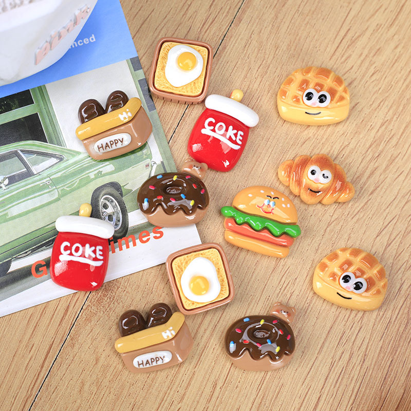 創意的な食事とパンの冷蔵庫はシミュレーションの美食ファンdiy樹脂の部品の穴の靴の花の小さい置物を貼ります。