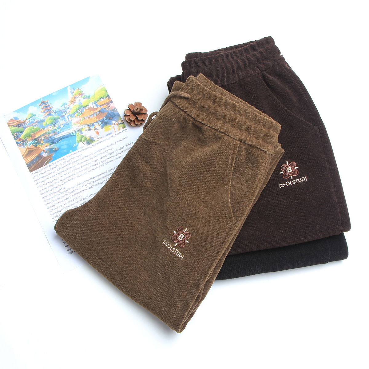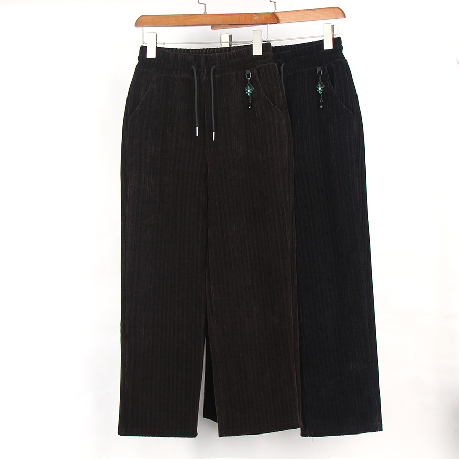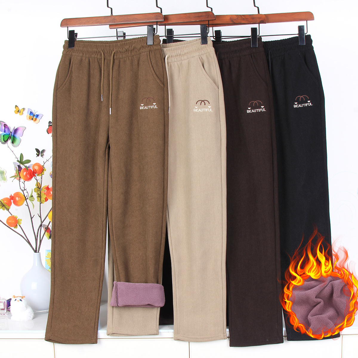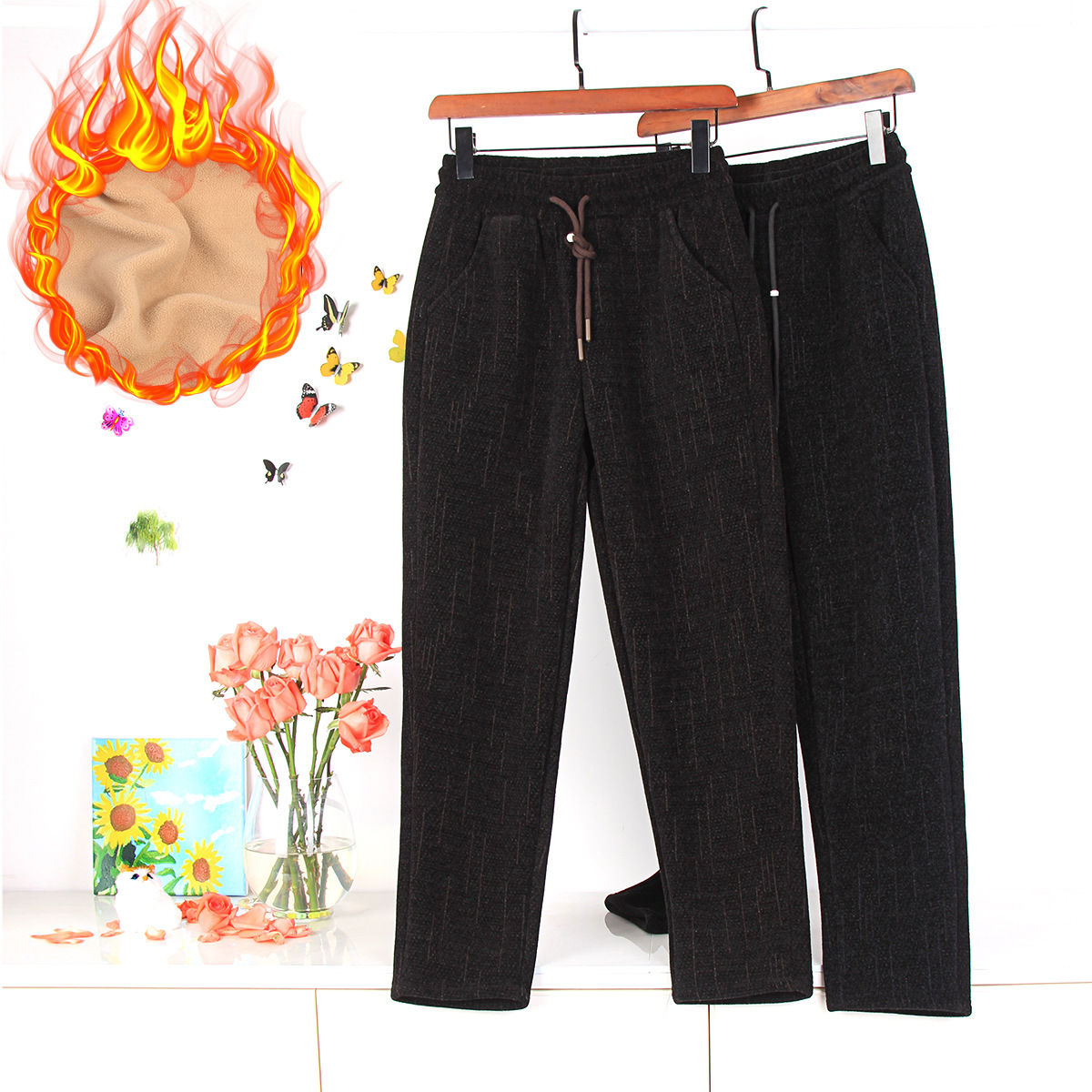 秋冬の新型のシェニールとベルベットのカジュアルパンツの女性のベルベットの厚いストレートパンツの女性のゆるいお母さんの保温ズボン