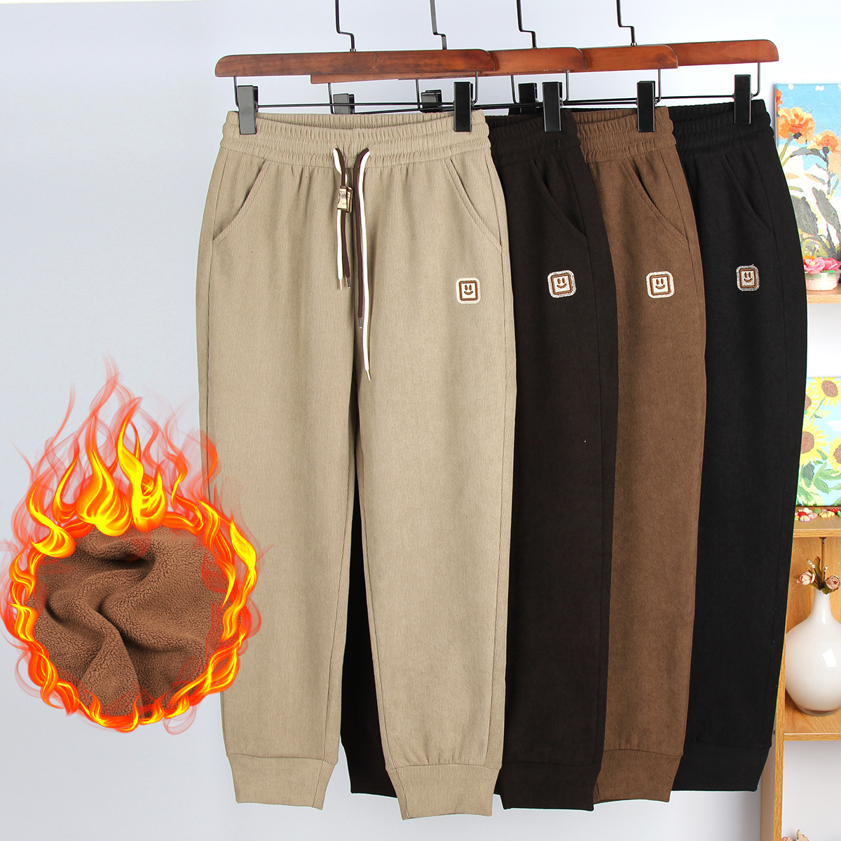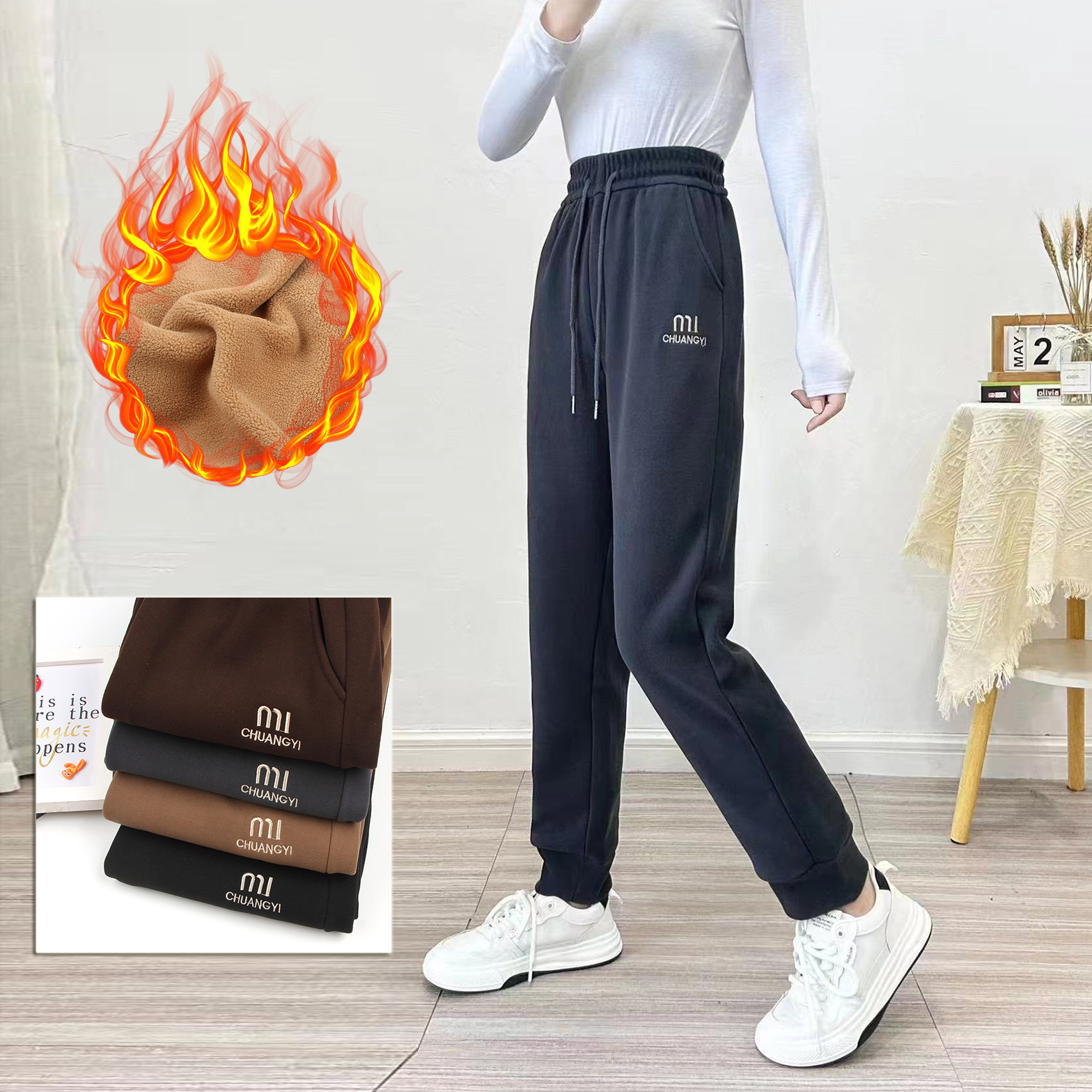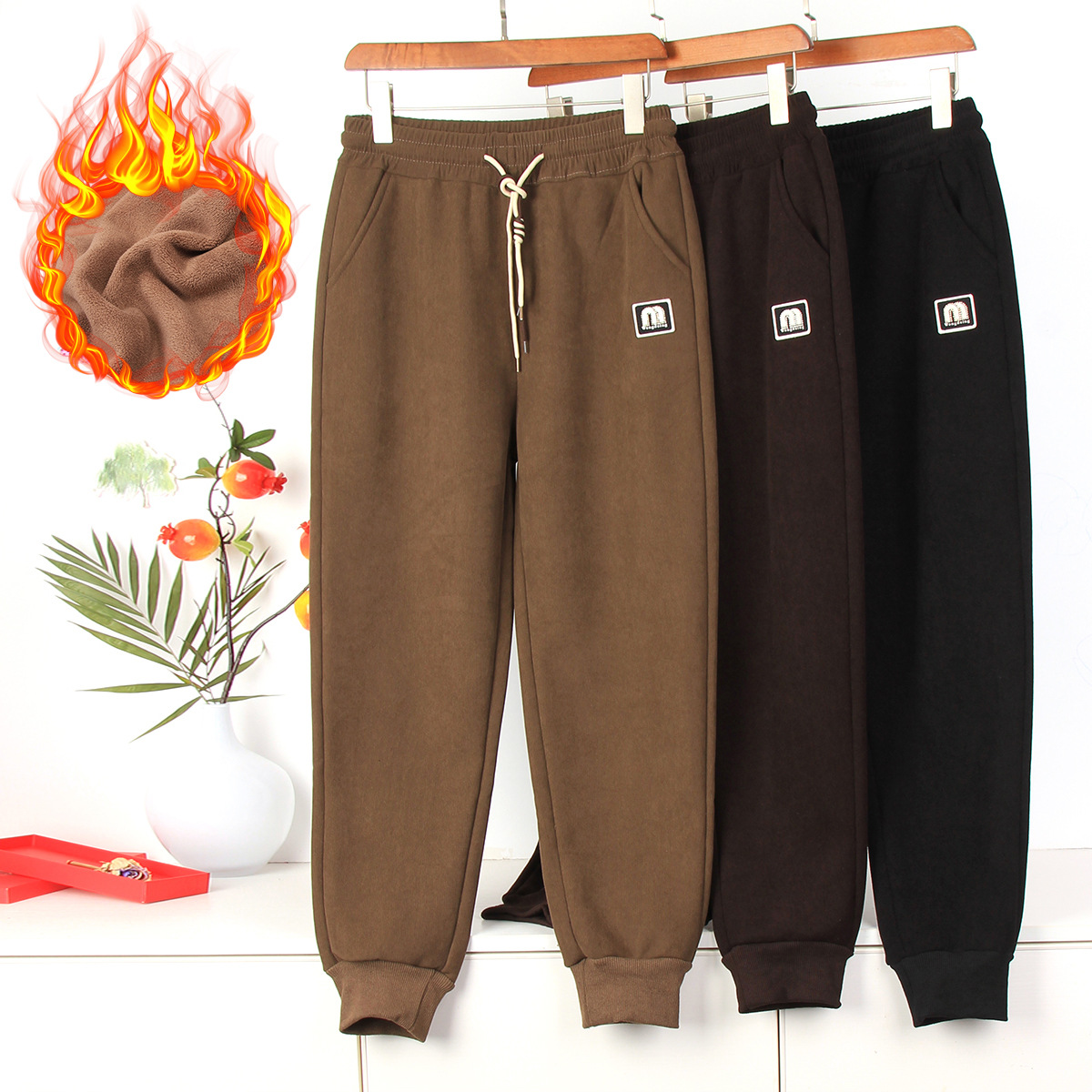2024冬の新型ベルベットはストレートのハーレムパンツの女性運動レジャー保温ズボンの高腰中年パンツを厚くした