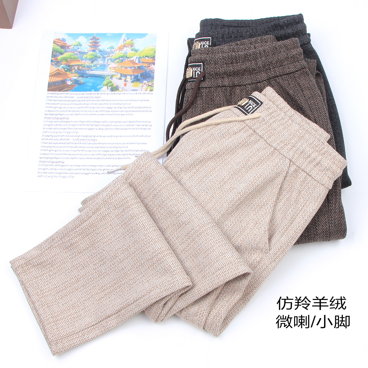 特厚の羊の小毛のトランペットのズボンの女性の秋冬の加毛の厚い金のミンクの毛のまっすぐな筒のカジュアルなズボンのお母さんのズボンの保温ズボン