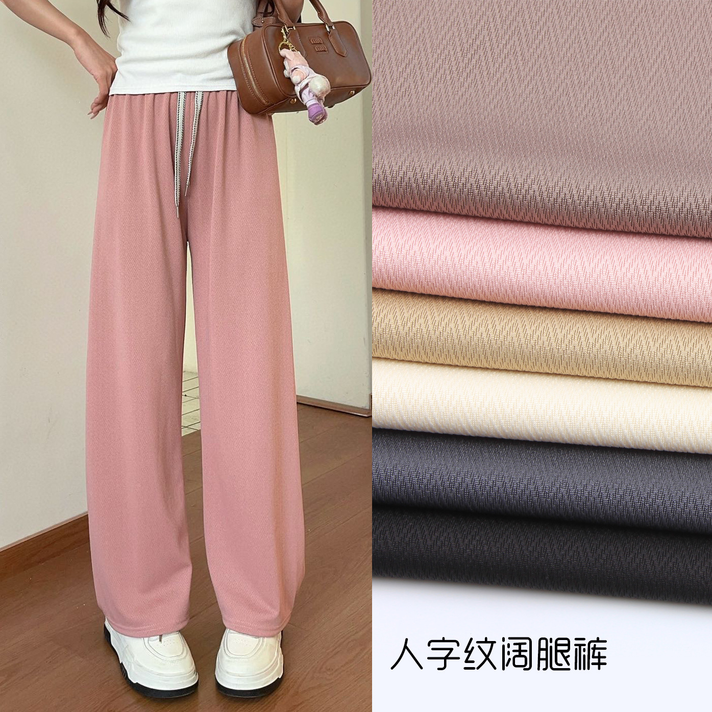 女性用の新しいヘリンボーンワイドレッグパンツ、ハイウエスト、薄手、スリム、多用途、シンプル、ルーズ、ドローストリング、カジュアルストレートパンツ