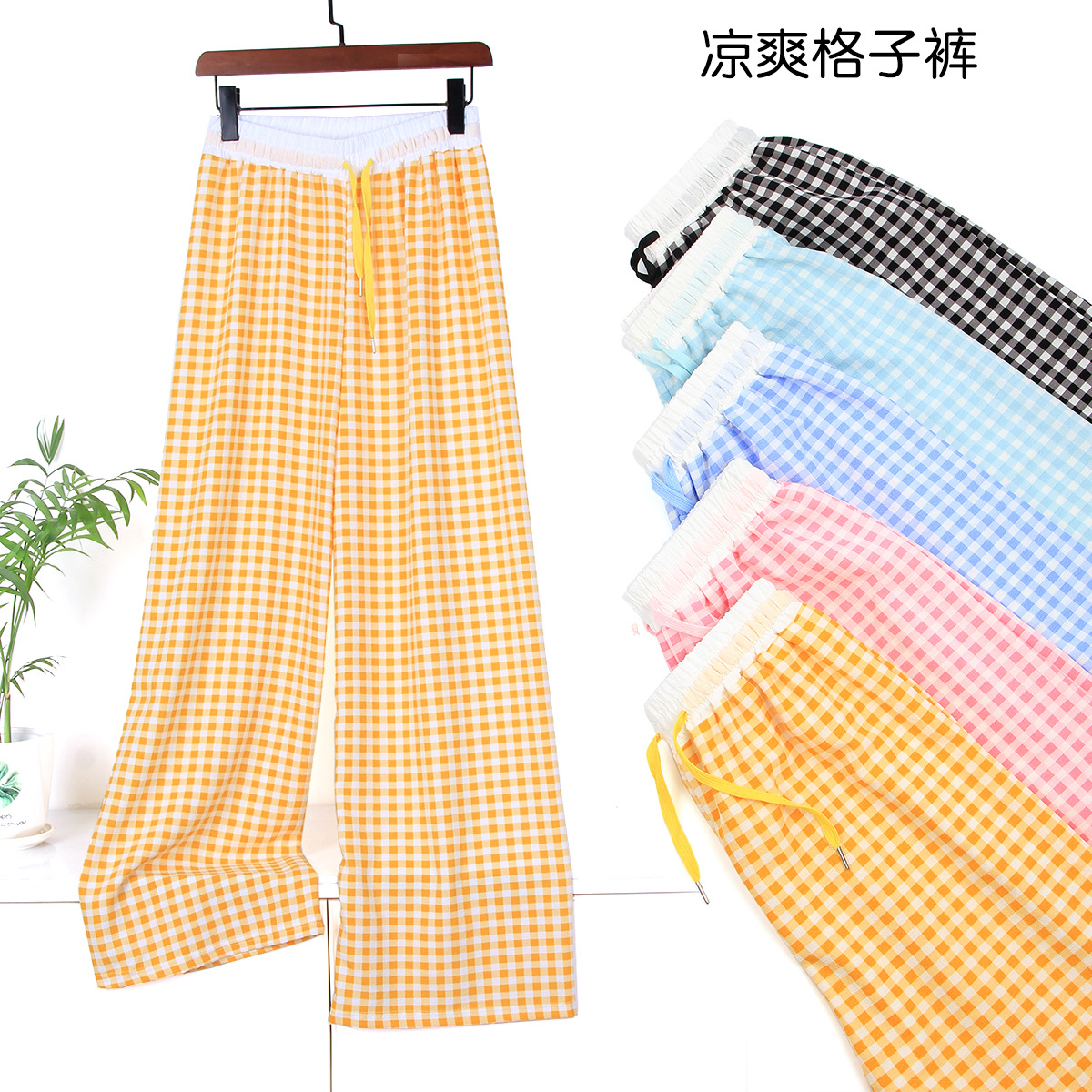 ピンクの格子の広脚のズボンの女性の夏の薄いタイプの2025新型の高腰はやせているストレートのカジュアルなズボンのゆったりした山本のズボンを現します。