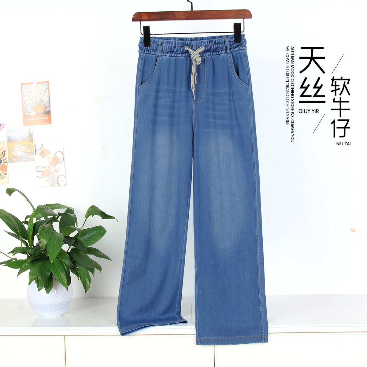 女性用テンセルジーンズ、女性用夏用薄手ウォッシュジーンズ、女性用ゆったりワイドレッグジーンズ、女性用小柄夏用パンツ