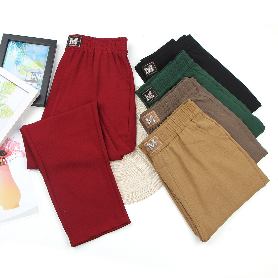 新作の狭いバージョンのワイドパンツの女性の夏の薄いタイプの中高年のお母さんは氷の糸のストレートパンツの中年の女性のカジュアルなズボンをまねます。