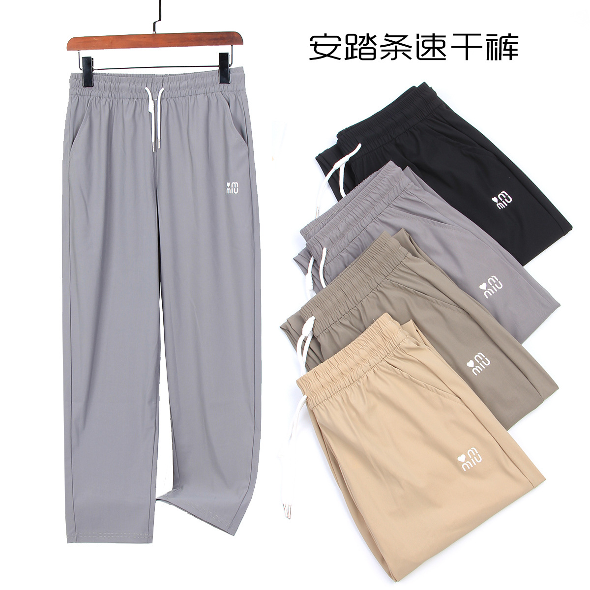 夏用薄手高弾性アイスシルクアイスフィールカジュアル通気性スポーツパンツルーズクイック空調速乾パンツメンズストレートパンツ