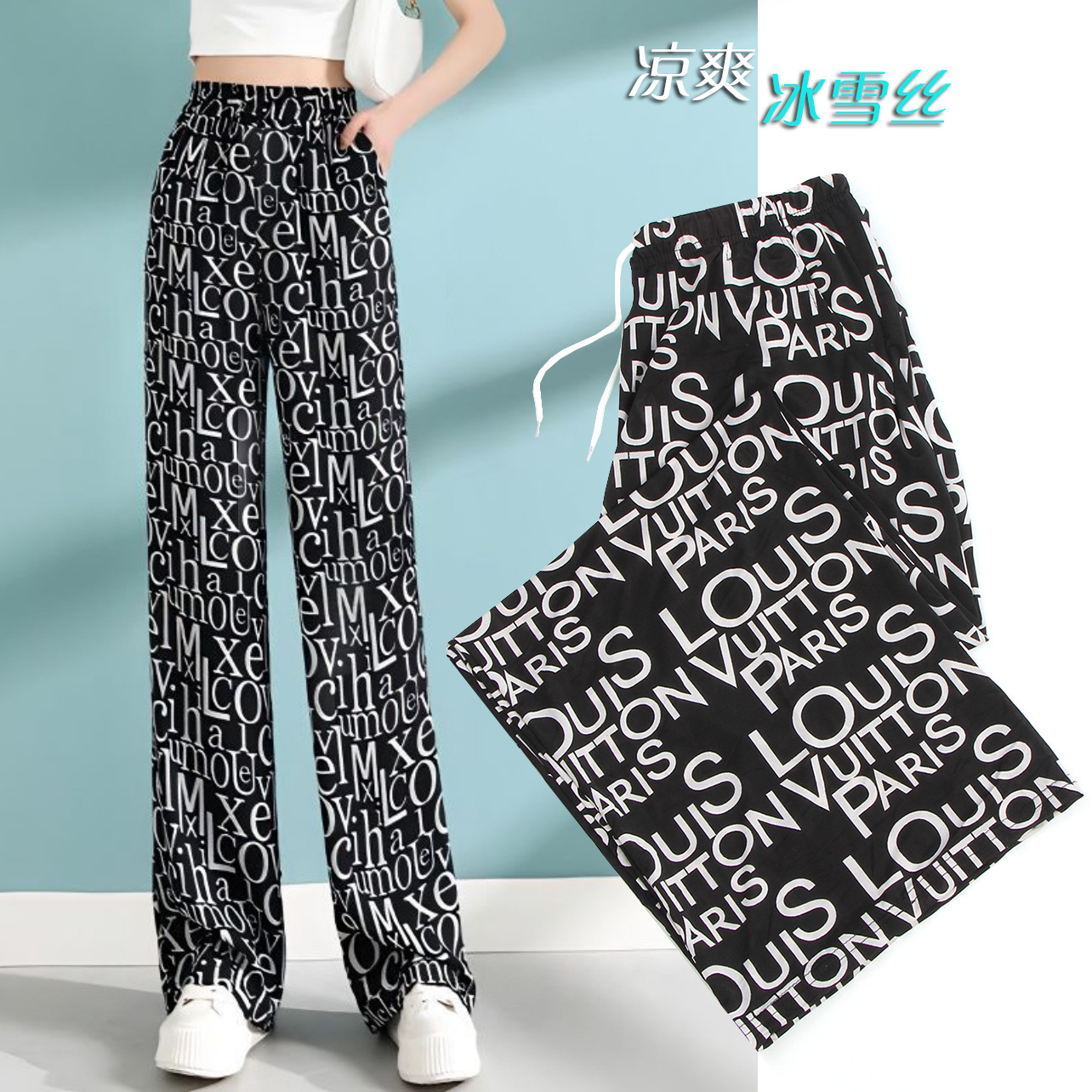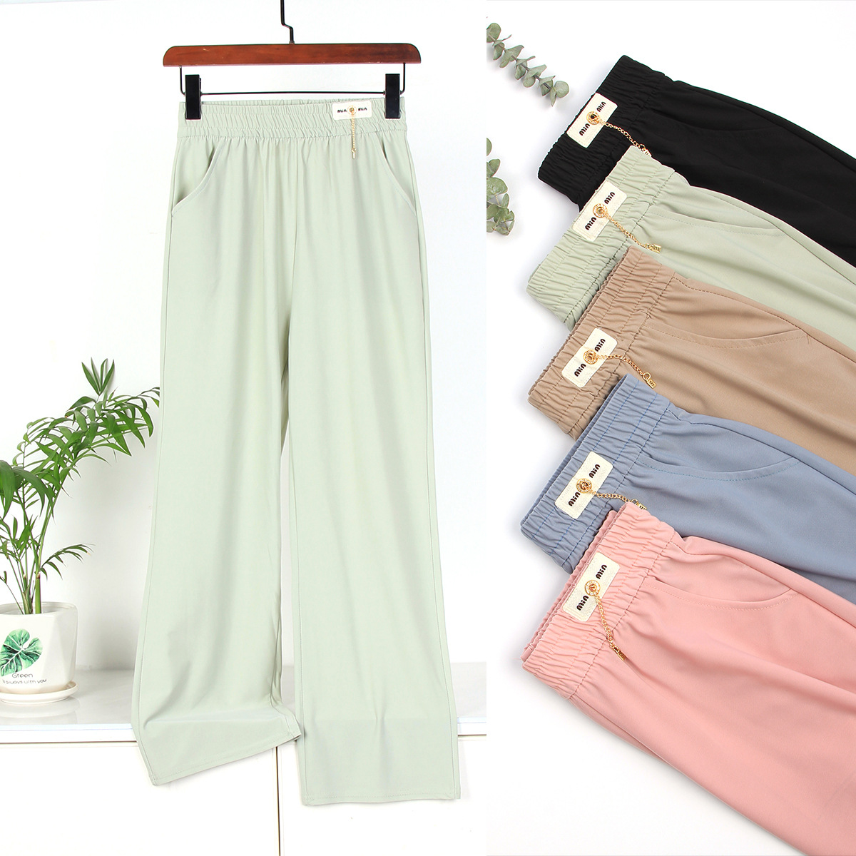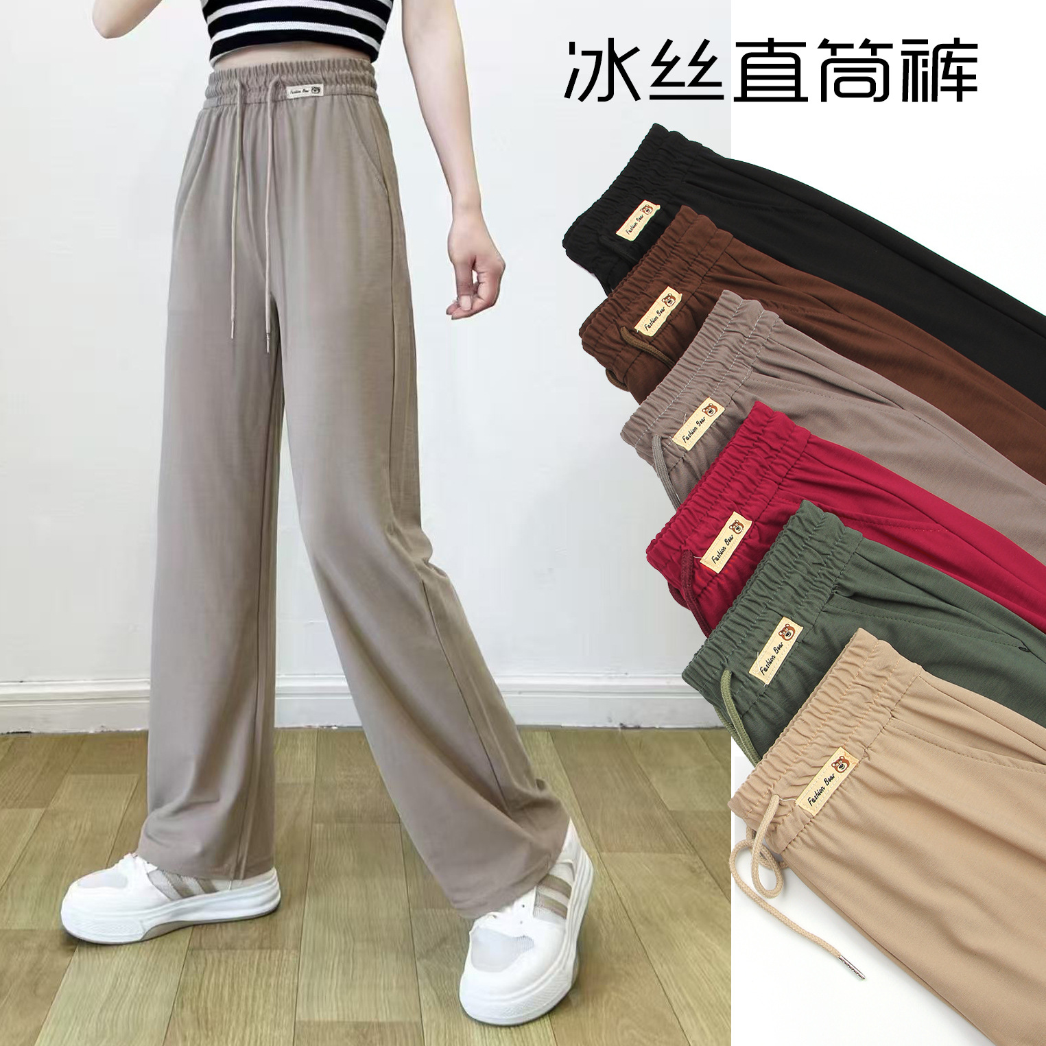 夏のストレートカジュアルなゆるい垂直感の薄い氷糸ズボンのワイドパンツ運動のゆるい薄いストレートパンツ