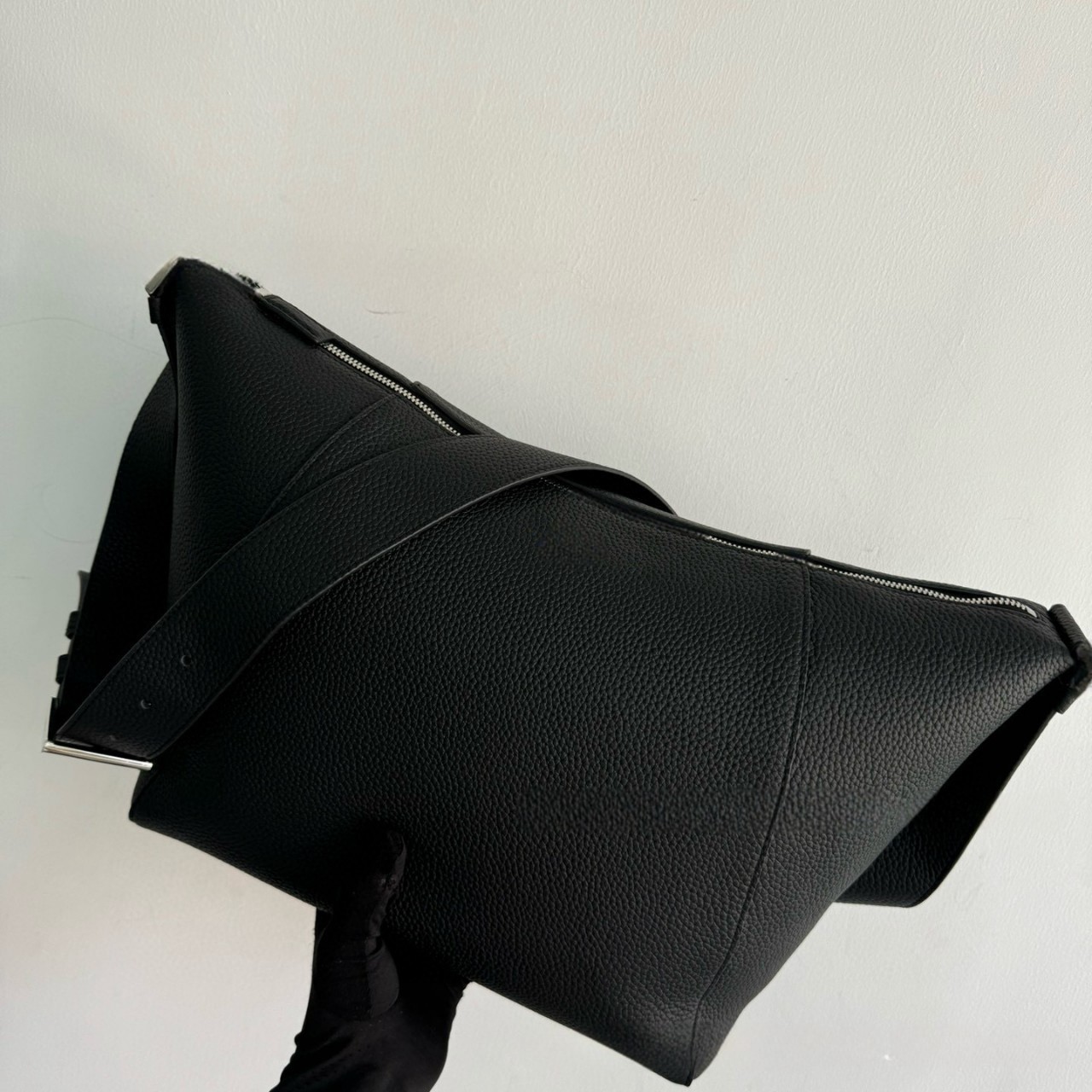 L意威23新品メンズ刺繍ショルダーストラップブラック牛革シンプルデザインカジュアルシングルショルダーバッグ高品質