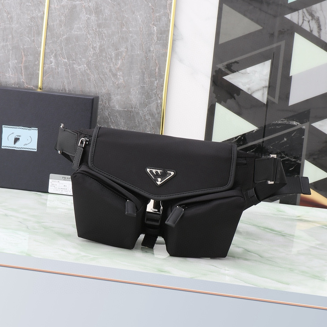P ラダ バッグ メンズ ブラック ロゴ トライアングル ロゴ フリップ ショルダー クロスボディバッグ 正規品 高品質 2VD073