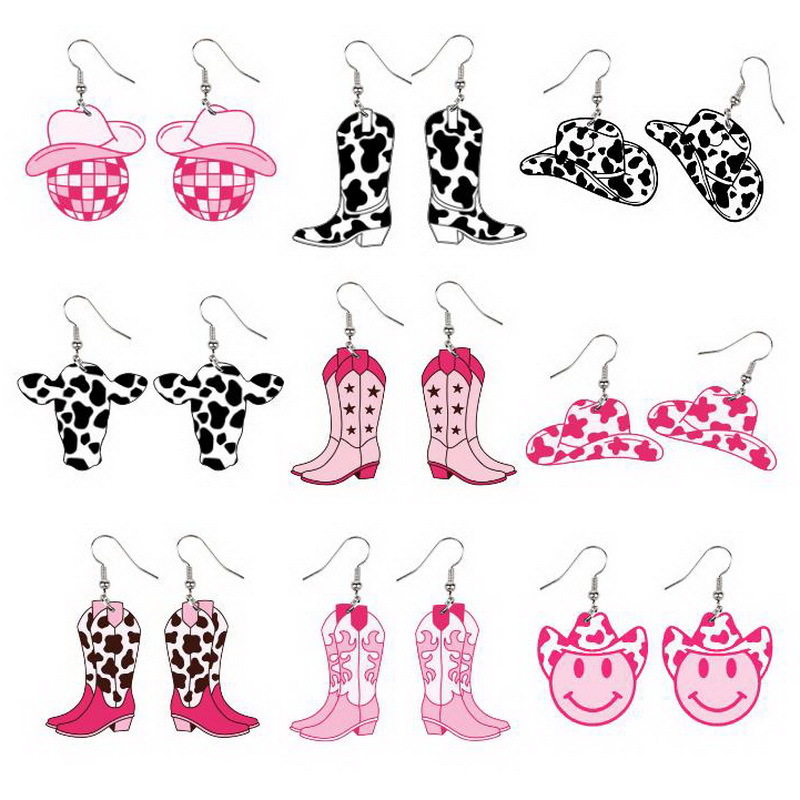 西部カウボーイ風五角星帽子ブーツ笑顔乳牛イヤリングシンプルファッション個性イヤリングアクセサリー女