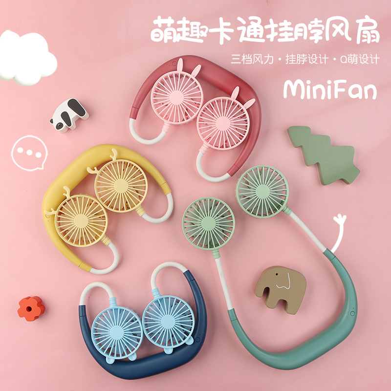 点滴の扇風機の創意の怠け者は首のusb充電の小さい扇風機の女子学生の屋外の携帯する漫画の運動の扇風機を掛けます。