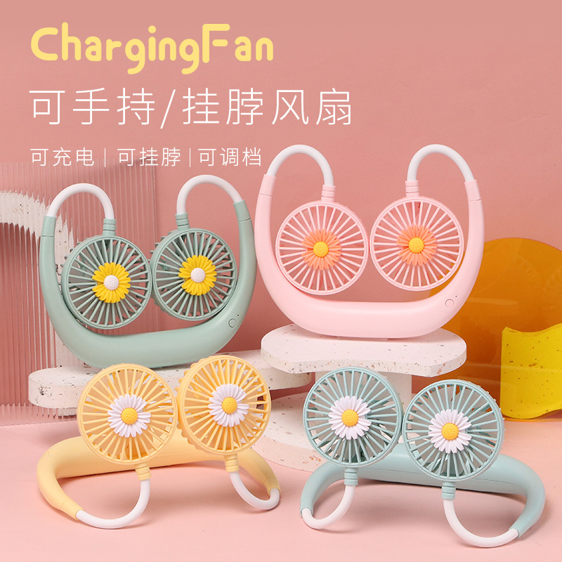 点滴の扇風機のデイジーの怠け者は首の屋外の運動のusb充電の小さい扇風機の事務を掛けて家庭の扇風機を学びます。