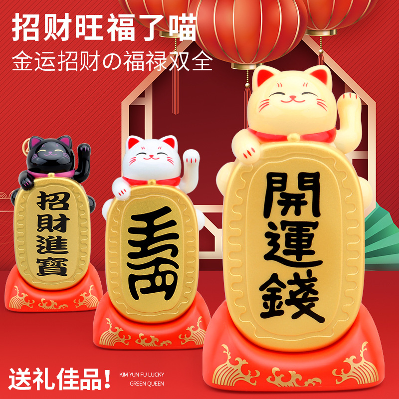 ソーラー金貨招き猫揺り手風水猫自動車置物ケーキベーカリー装飾新年プレゼント