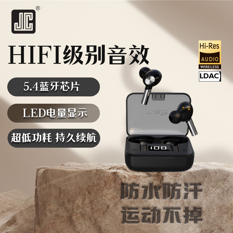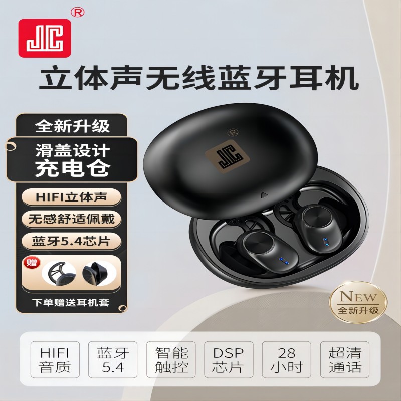 JC Bluetooth ヘッドセット 5.4 長時間通話、ノイズ低減、低遅延、インイヤー ステレオ スポーツ ワイヤレス、IPX7 防水