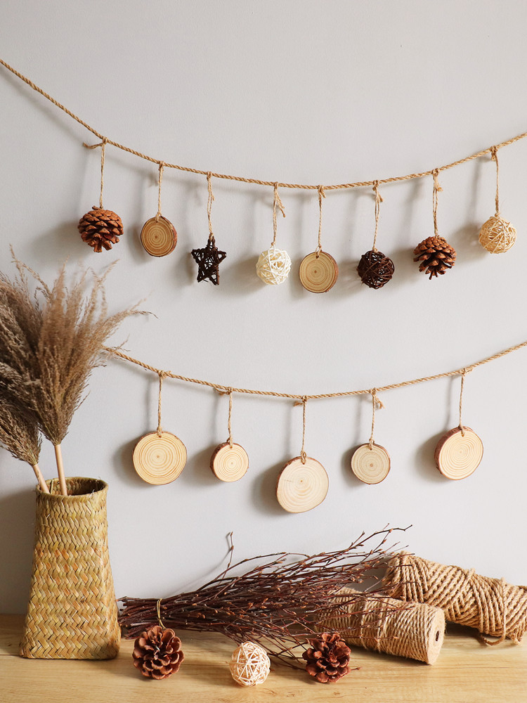 木片松果藤球原木掛け壁面装飾民宿旅館幼稚園創意壁掛け森系ペンダント