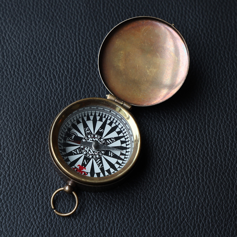インドの銅真鍮日時計カバーコンパスアメリカンレトロ銅ポータブルミニコンパスソフト装飾品