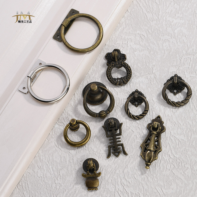 引き出しの取っ手のタンスのドアの取っ手の食器棚は古い双穴の小さい取っ手の環状の青古銅に似ています。