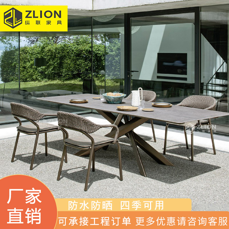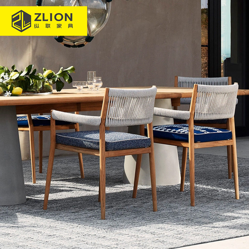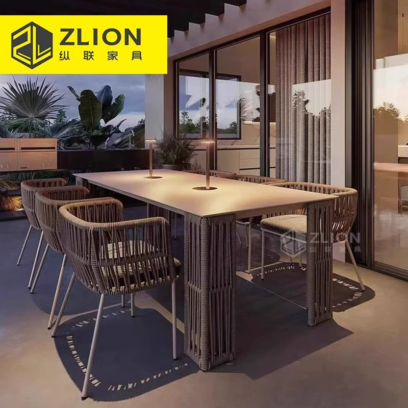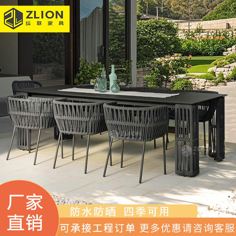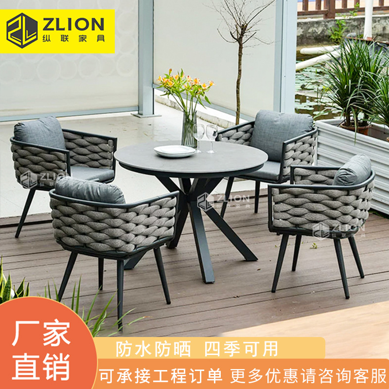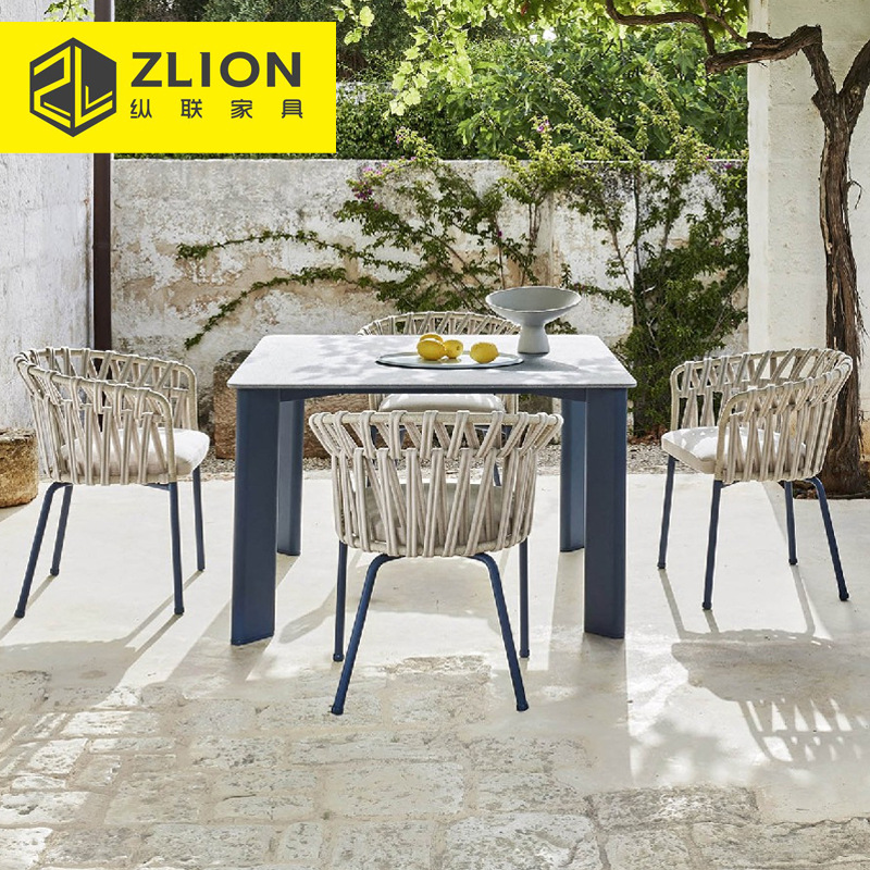 北欧屋外ヴィラ中庭テーブルと椅子ガーデンテラスロープチェア家具バルコニーレジャーダイニングテーブルホームチェアセット