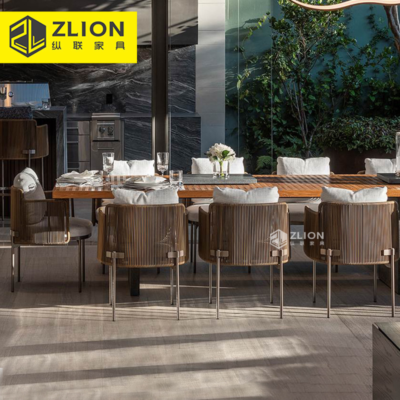 アウトドアヴィラ無垢材テーブルと椅子B&Bガーデン家具ダイニングチェアテラスバルコニーハイエンドチークダイニングテーブル籐椅子組み合わせ