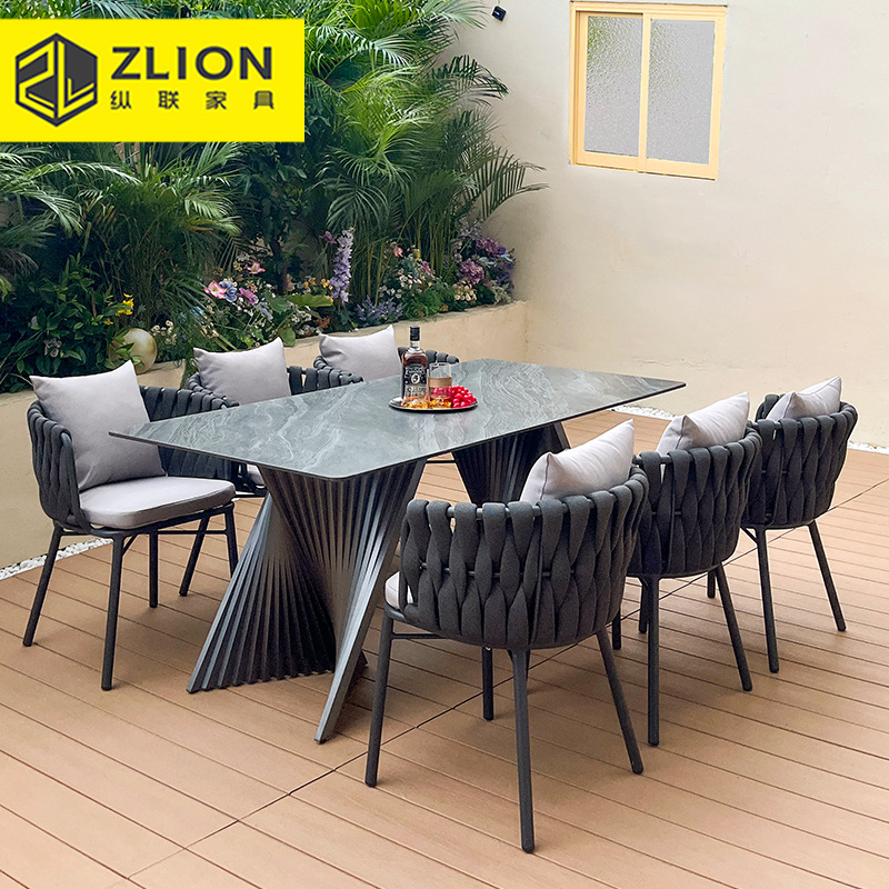 屋外ガーデンパティオテーブルと椅子ヴィラテラススレートダイニングテーブルと椅子の組み合わせB&Bバルコニー屋外レジャー籐椅子