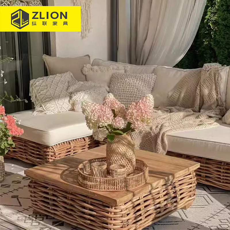 レジャーアウトドアヴィラソファ中庭ガーデン家具ホテルテラスソファ組み合わせB&B籐織りソファ椅子カバー