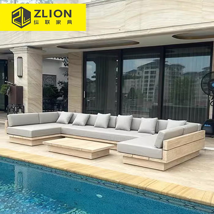 屋外ヴィラガーデンソファハイエンドチークソファ組み合わせ家具屋外ホテル中庭テラス無垢材家具