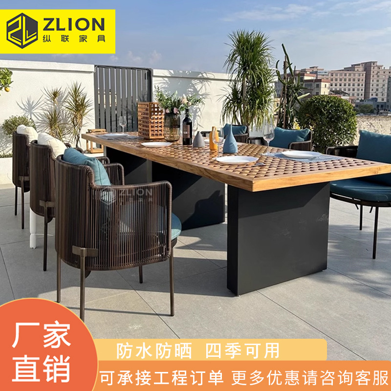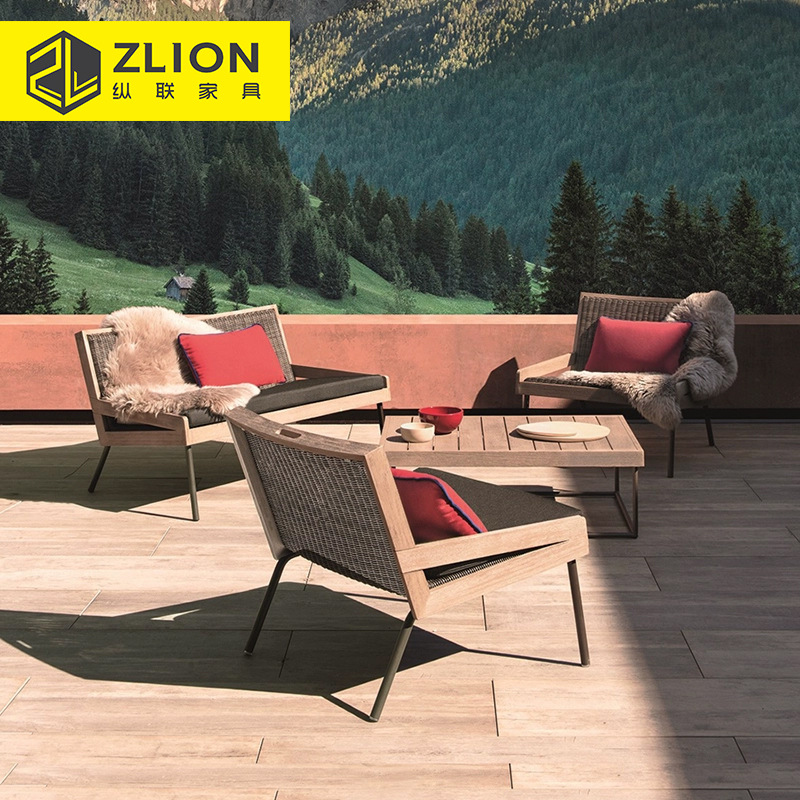 北欧屋外ガーデンパティオチークソファヴィラホテルB&Bソファテラスレジャーソファコーヒーテーブル家具