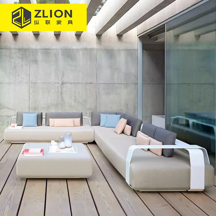 屋外ヴィラテラスソファ組み合わせホテル中庭ガーデンメタルソファ家具屋外B&Bバルコニーソファ