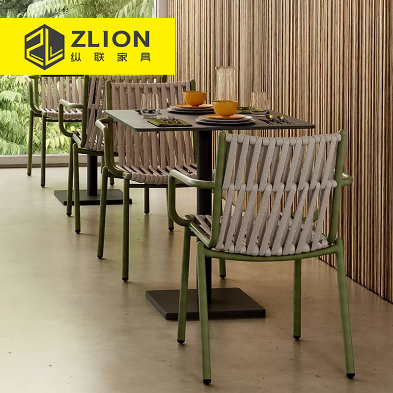 屋外ヴィラガーデンテーブルと椅子の組み合わせオープンエア中庭家具レジャーミルクティーショップロープ織り椅子コーヒーテーブルの組み合わせ
