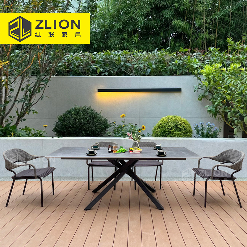 ハイエンドの屋外ヴィラ中庭テーブルと椅子レジャー籐椅子岩板ダイニングテーブル家具ホテルテラスダイニングテーブルと椅子家具