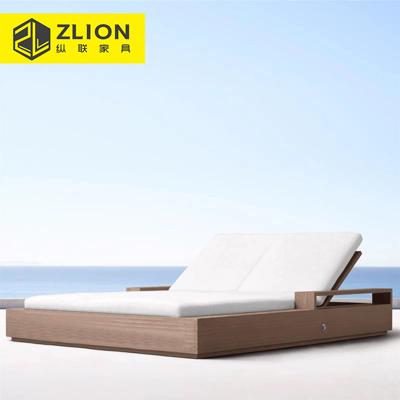 ハイエンドの無垢材の屋外ガーデン中庭リクライニングベッドヴィラテラス家具屋外ホテルビーチ日光浴リクライニングチェア